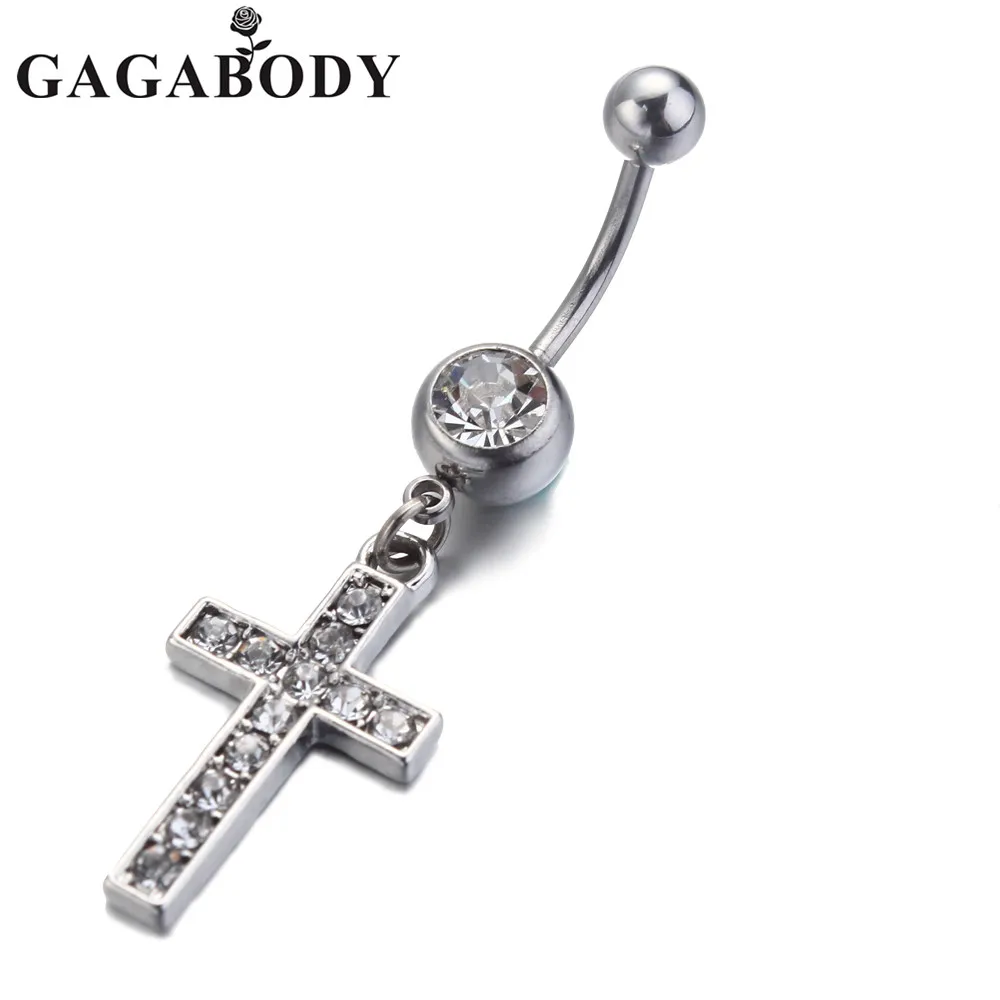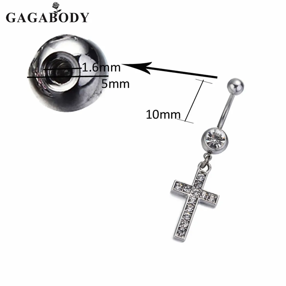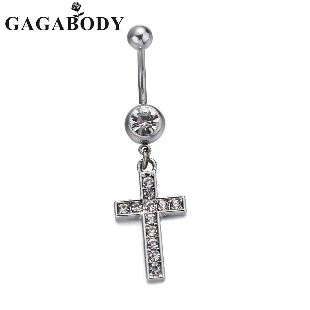 Best Offer 2017 High Quality Cross Medical Steel Crystal Belly Button Ring Dangle Navel Body Jewelry Piercings | GAGABODY 16g 14g Cartilage Earring Septum Clicker Nose Ring Hoop Tragus Helix Rook Earrings Septum Ring Piercing 8/10mm