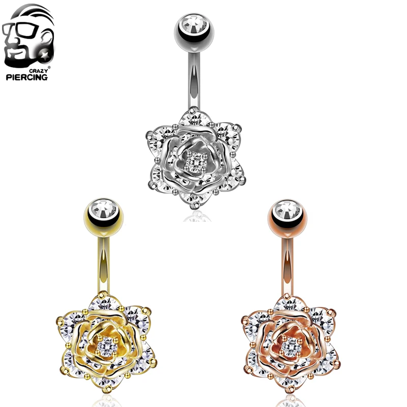 Order 2017 New Fashion Flower Style Shaped High Quality Crystal Medical Steel Buckle Blue Color Piercing