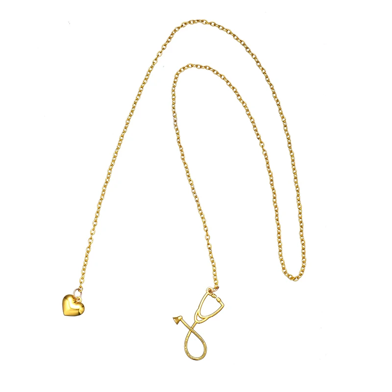 Discount New Arrival Doctor Medical Stethoscope Syringe Necklace Heart Nurse Cap Skeletal Anatomy Metal Pend