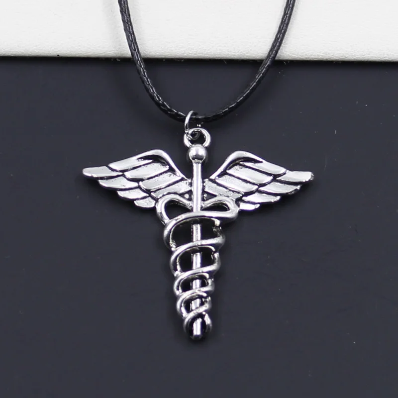 - Simple Classic fashion caduceus medicine symbol Antique Silver Pendant Girl Short Long Chain Necklaces Jewelry for women