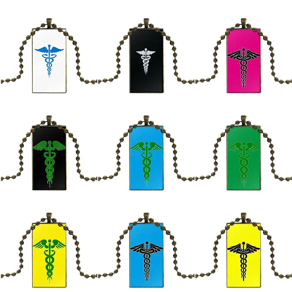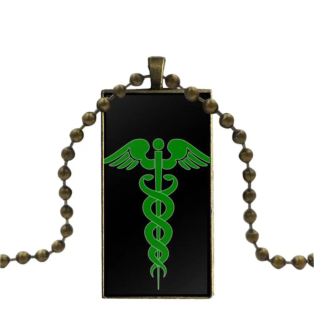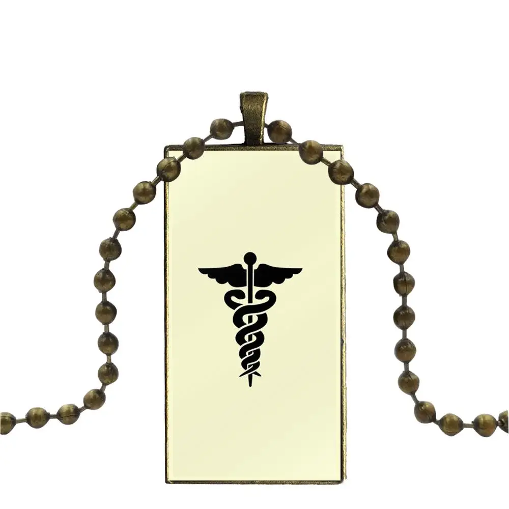 New Caduceus Medical Logo Necklace Fashion Long Chain With Rectangle Necklace Jewelry For Women Men | For Women High Quality Girls Lovely Melanie Martinez Crybaby Glass Pendant Necklace Handmade Half Pendant Rectangle Necklace