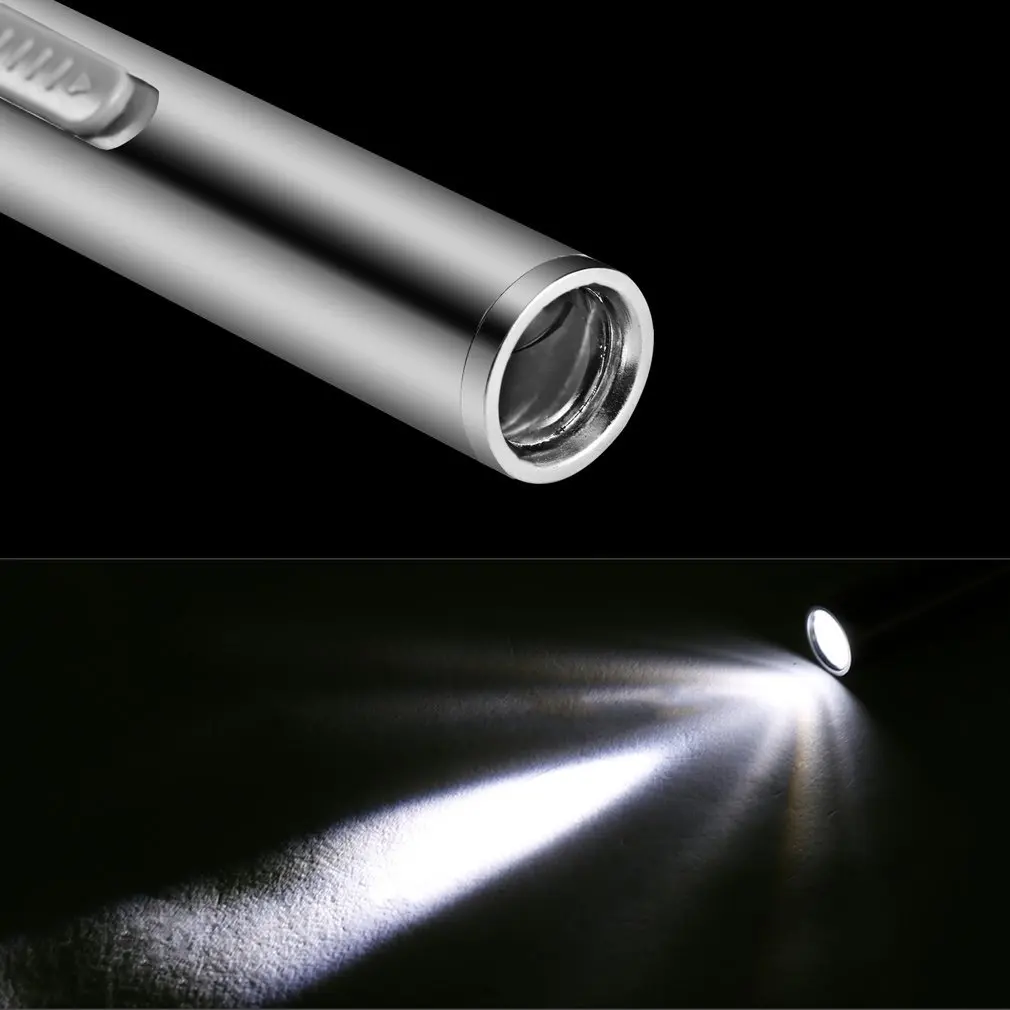 Refurbished Medical Handy Pen Light USB Rechargeable Mini Nursing Flashlight LED Torch + Stainless Steel Clip Q